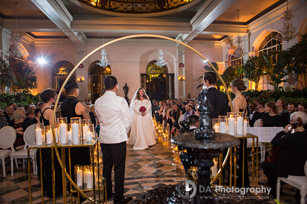 With great anticipation, Kelly walked down the aisle, and this moment and the entire Casa Loma wedding ceremony looked magical. It was an emotional, magical, happy wedding ceremony with a grand exit, and the two walked as husband and wife.