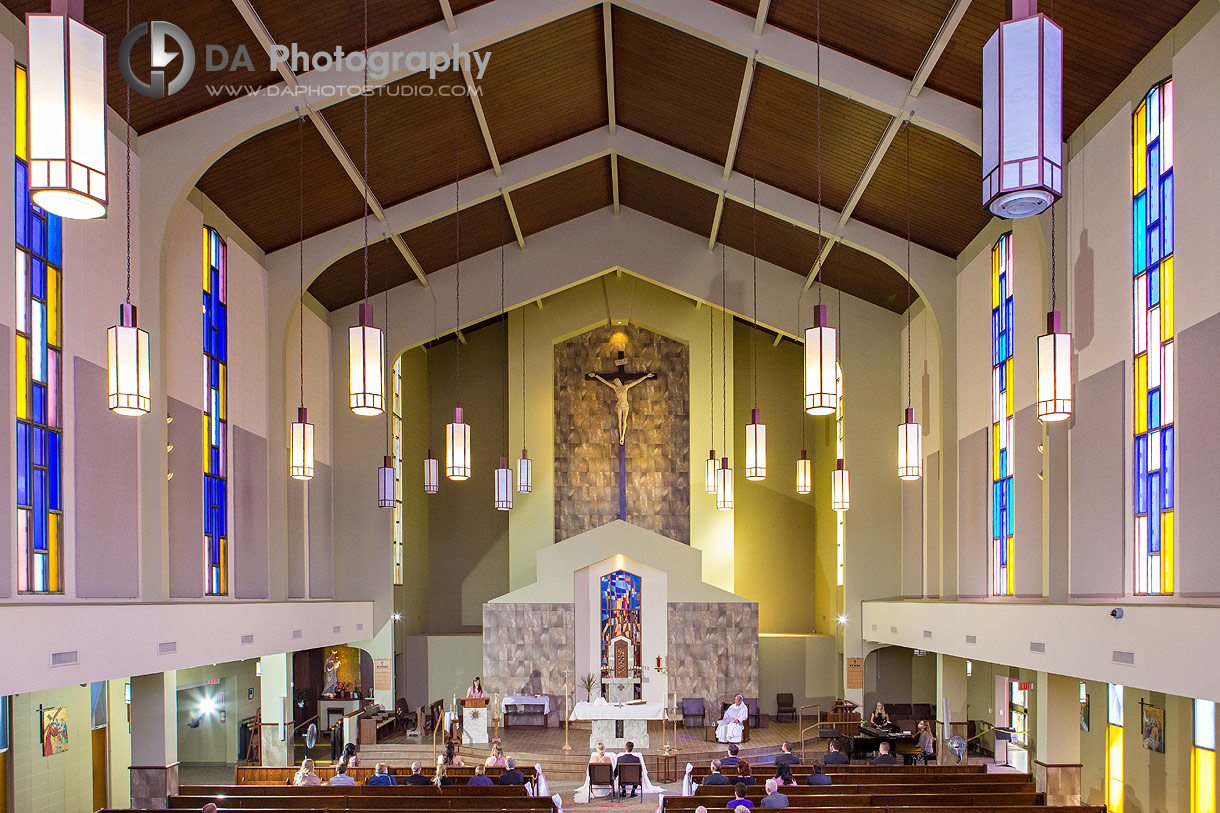 The wedding ceremony was scheduled to take place at the Holy Rosary Church in Guelph, which I had not photographed before. Although my wife had been to this place as she had supplied at the Catholic school as part of the church, this was my first experience. I attended the rehearsal with Jenn and James two days before the ceremony to familiarize myself with their church’s rules and regulations, along with the additional pandemic restrictions.