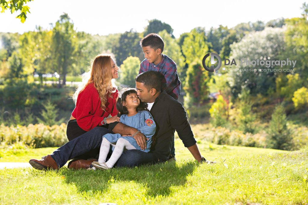 One of the biggest tips I can suggest for fall sessions as a Brampton family photographer is to schedule a date at the beginning of the season. At this time, the leaves are starting to change colour but the weather is a little more predictable. The later on you get into October and beyond, it’s harder to anticipate! There is then a higher chance of rain or wind that will leave you with bare branches, defying the point of fall photography!