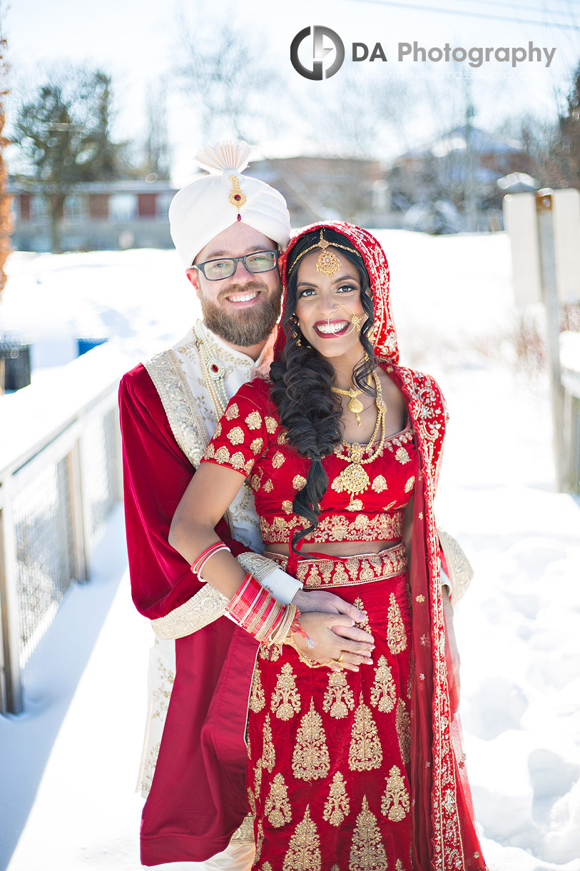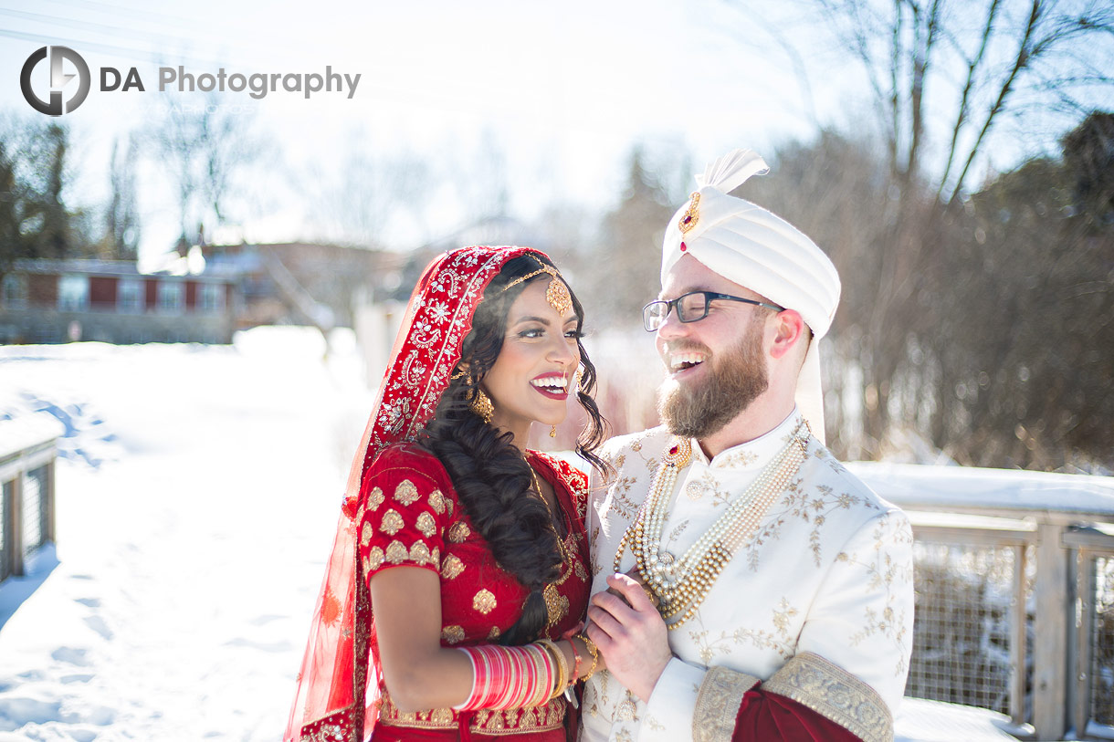 Their chosen venue was the elegant Hazelton Manor in Vaughan, a perfect setting for their traditional Indian wedding. With the promise of chilly temperatures in February, we brainstormed how to capture their special moments during the mid-winter weather. In the end, Kurt’s idea of having their Hazleton Manor winter wedding photo session at the quaint Oakbank Park was pure genius.