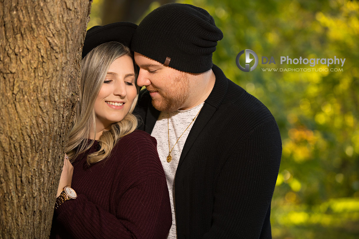 With the colourful scenery, fall sessions are absolutely breathtaking in Ontario. With that being said, autumn sessions can also be a bit tricky. The season can bring unpredictable weather factors such as rain, wind, cold temperatures and diminishing daylight. Despite all those obstacles and barriers, fall engagement photos are still very much in demand. For me, they are the #1 most requested engagement sessions.