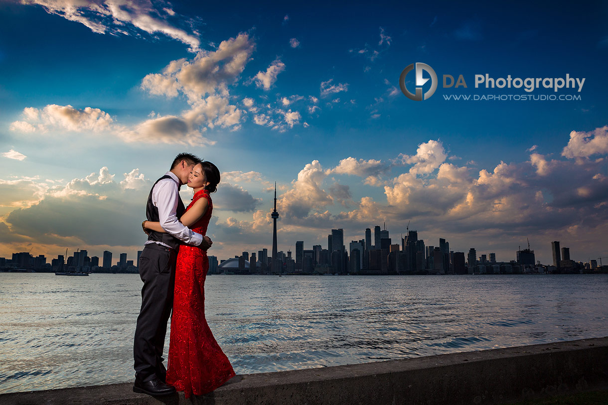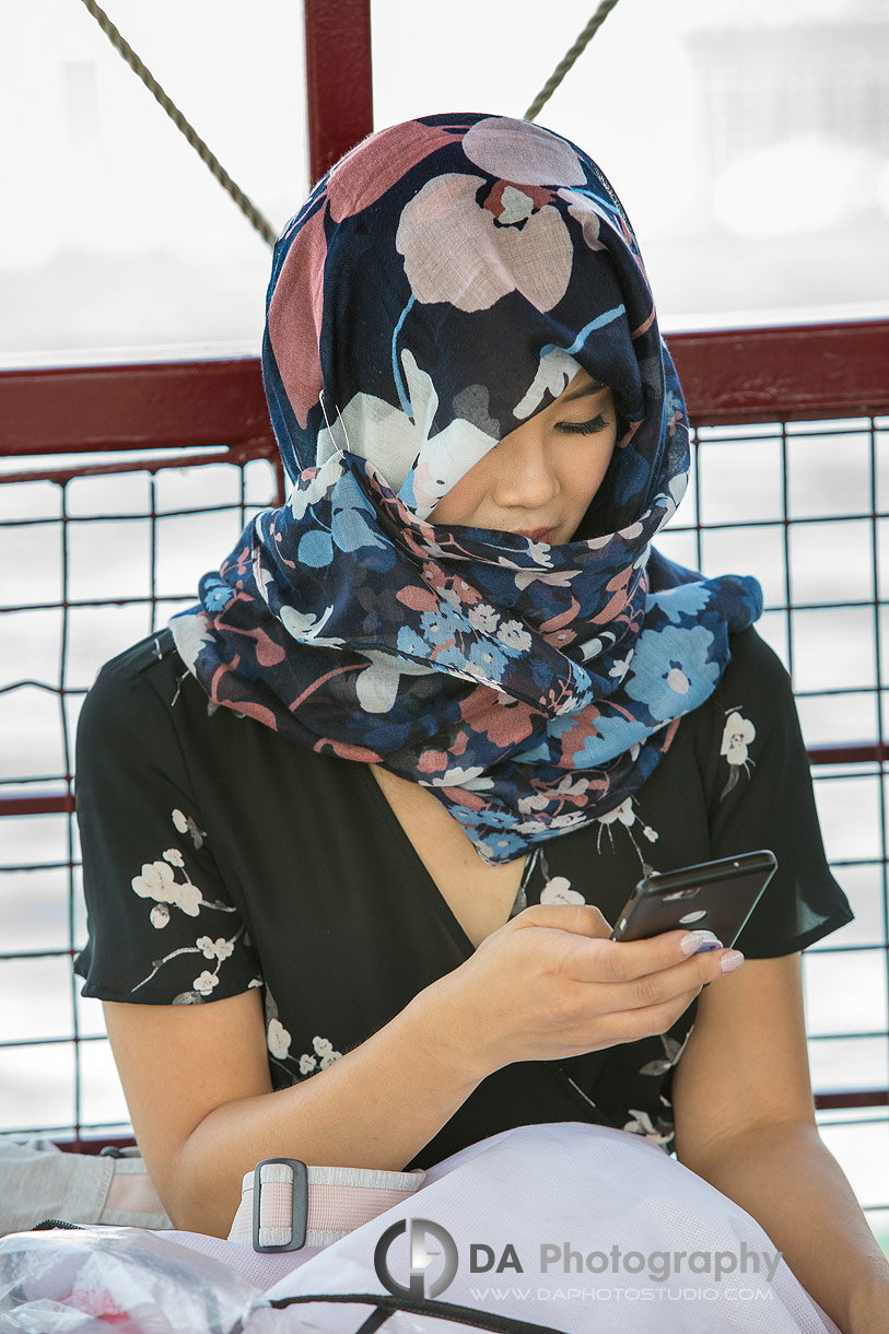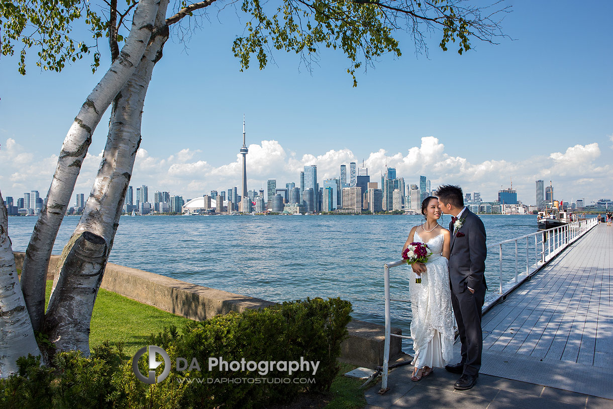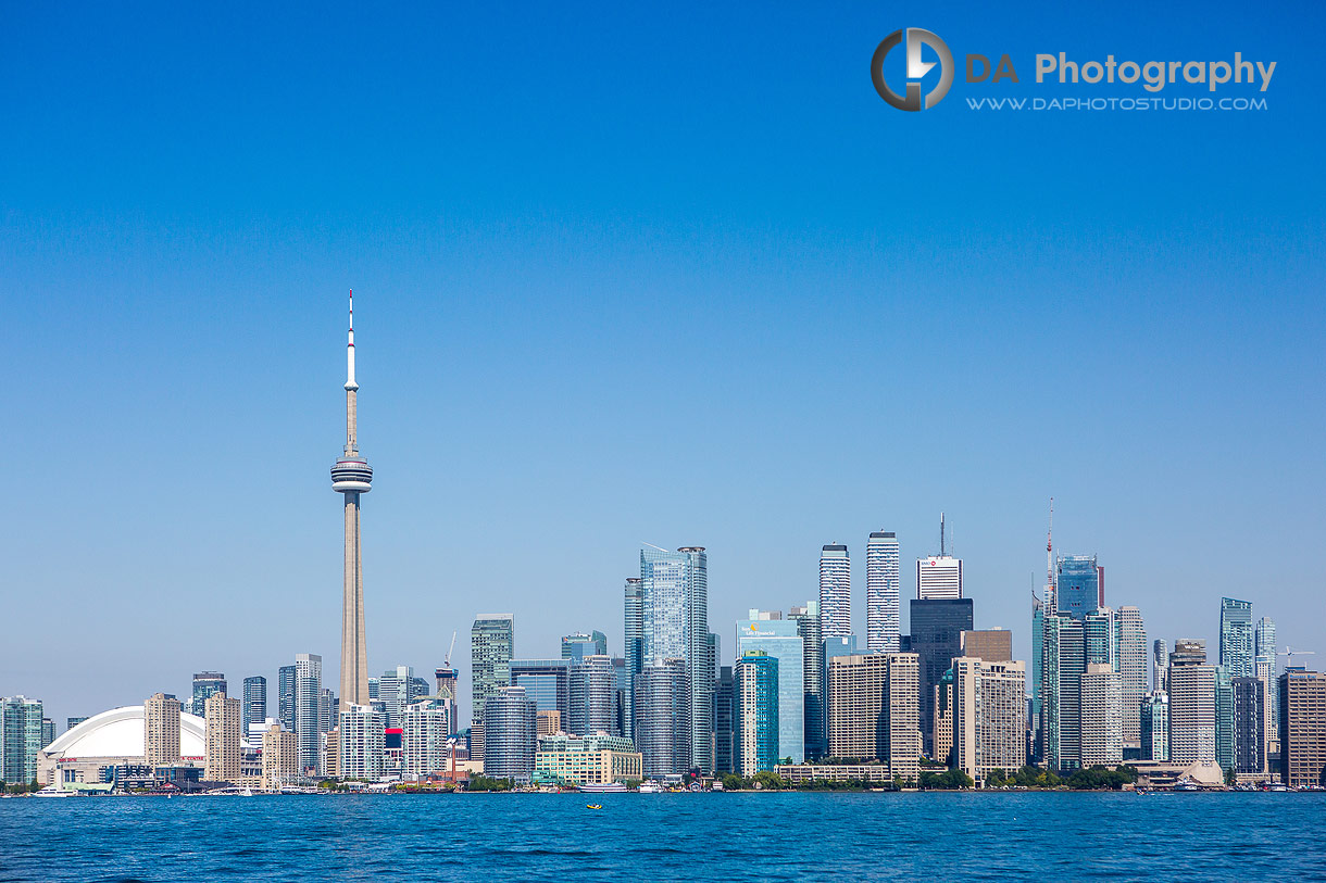 After leaving my equipment, I went back on the ferry to pick up the bride and her entourage. During that voyage, I was able to take numerous photos of the city’s skyline with the CN Tower from a viewpoint you don’t get everyday – the ferry! I took a bunch of photos before arriving at the tender station where Jess and her bridesmaids were waiting.