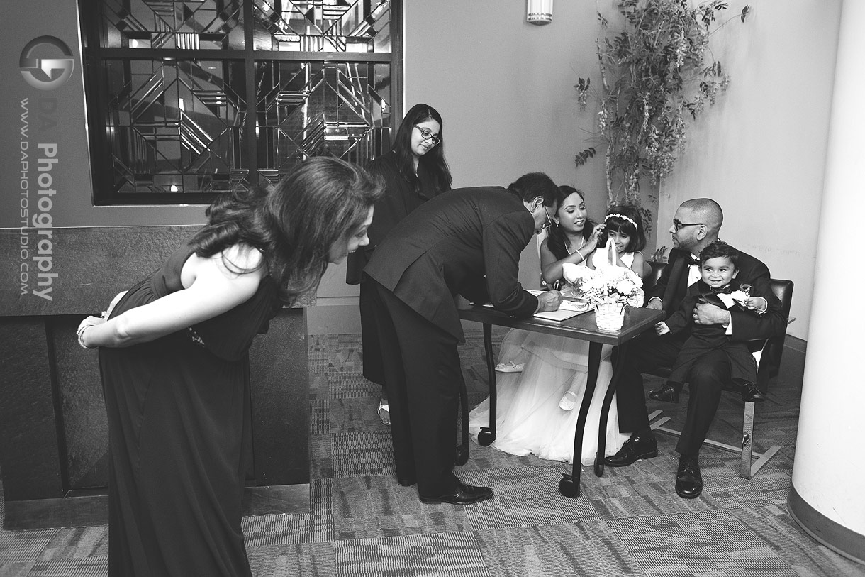 Trishna and Kavi chose to have their city hall wedding at Mississauga City Hall. Previously, I had photographed a few wedding ceremonies at Brampton City Hall and found it a bit underwhelming. I wasn’t impressed with how the event was organized by the city. I didn’t really know what to expect this time.
